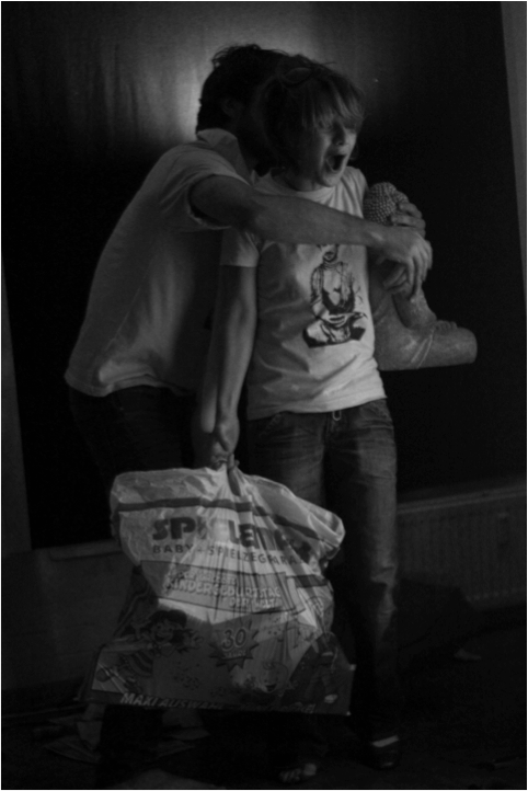“When Buddha Slipped on the Grain of Rice” is the more or less desperate search by a female and a male performer for the Buddha within themselves. According to Tibetan Buddhism, every human being possesses Buddha-nature; the only difference is in which life it manifests itself.