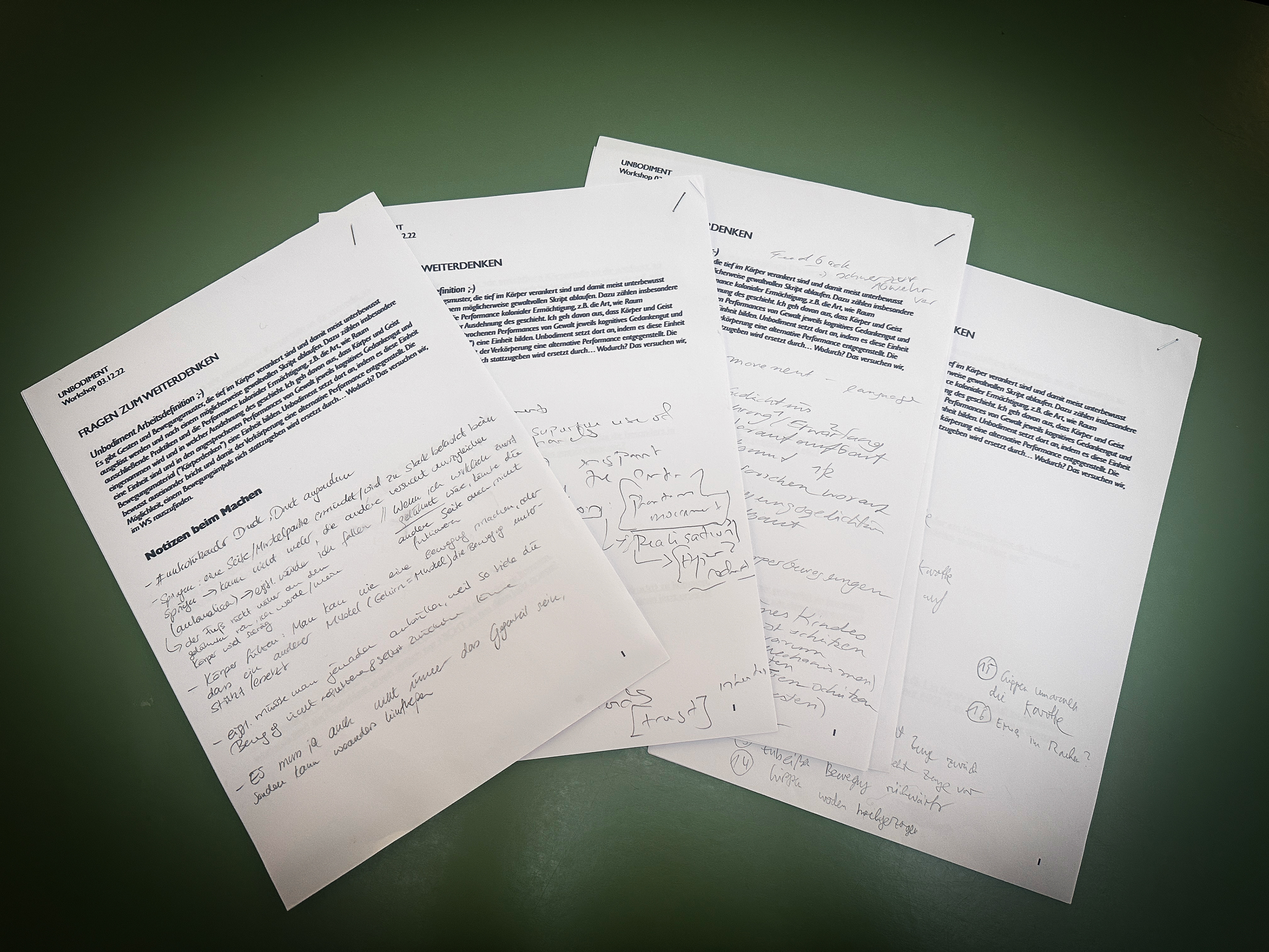 "The UNBODIMENT Project" is the second part of my research series, The Biased Body. It derives from my personal experience as someone who is trying to reflect on their own discriminatory behavior, especially in terms of movements and smaller gestures. I noticed that in moments of potential microaggression performed from my side, I need to consciosly chose not to perform the corresponding movement. What remains is a sort of invisible choreography built of phantom gestures. For this project, I was wondering how to make these empty gestures visible and how to elaborate on a potential counterpart. The experience of deciding against a discriminatory motion cannot guarantee its erasure. Somehow, the traces of violence remain in space - or at least in my bodily consciousness as the perpetrator. I assumed that UNBODIMENT meant to rip off the bodilyness from a movement score and to develop a functioning alternative. And I wanted to know how we can develop strategies to address violence without reproducing it.